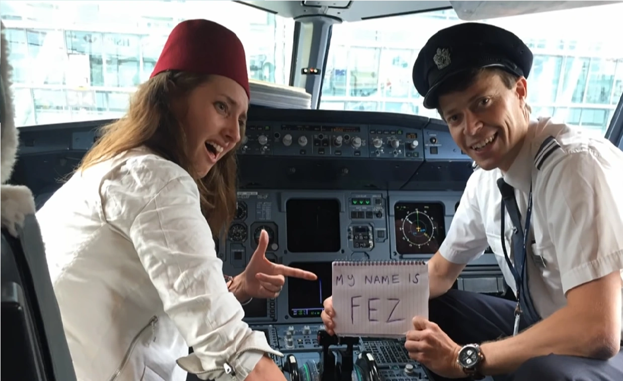 Jessica Knappett: Jessica took a photo of herself wearing a fez in the cockpit of an airplane next to a pilot who had the nickname of Fez. She received 3 points.